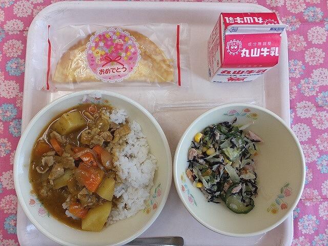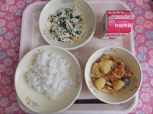 【献立】カレーライス・ひじきのサラダ・デザート・牛乳