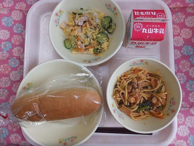 【献立】減量コッペパン・春野菜のスパゲティ・卵サラダ・牛乳
