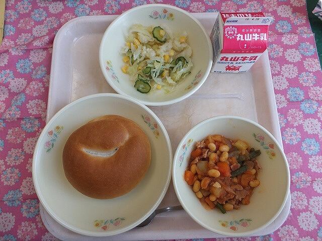 【献立】米粉パン・ポークビーンズ・スタミナサラダ・牛乳
