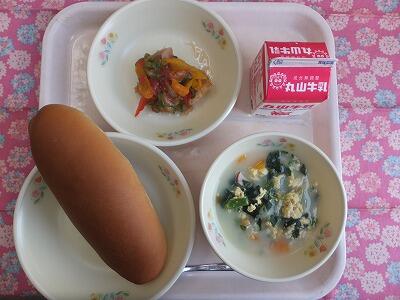【献立】黒糖パン・魚のエスカベージュ・卵スープ・牛乳