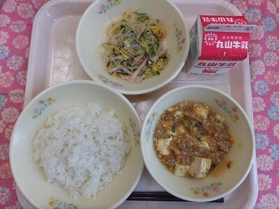【献立】麦ごはん・麻婆豆腐・パンサンスー・牛乳