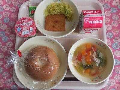 【献立】フィッシュバーガー・野菜のカラフルスープ・ヨーグルト・牛乳