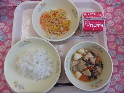 【献立】麦ごはん・豆腐の中華煮・中華風サラダ・牛乳