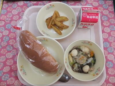 【献立】ミルクパン・八宝菜・じゃがいものバター味噌・牛乳