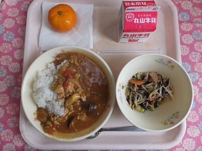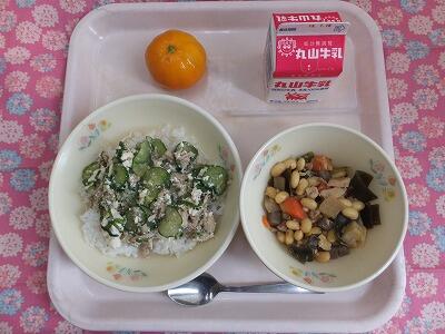 【献立】夏野菜のカレー・枝豆・果物・牛乳