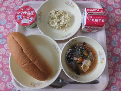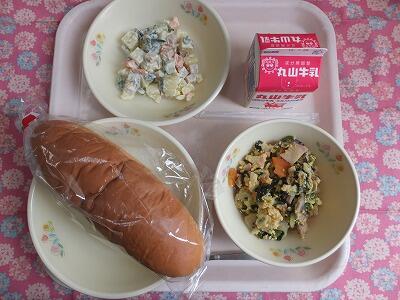 【献立】ミルクパン・卵とじ・マセドアンサラダ・牛乳