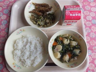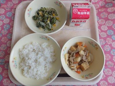 【献立一口メモ】今日の牛乳は味が違うと思ったことはありませんか?それは当たり前のことなのです。牛乳は牛の餌や季節によって味が変わります。夏は牛も食欲がなく餌を食べる量が減り、夏の牛乳はさらっとしています。冬は牛が寒さに負けないように餌を食べ、コクのある牛乳になります。搾りたての牛乳は私たちの体温と同じ38℃くらいの温かさがあります。そのままでは腐ってしまうので、冷やして牧場から工場へ運ばれ殺菌、パック詰めされて学校に届きます。成長期の皆さんにとって大切な牛乳、しっかり飲みましょう。