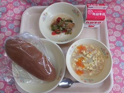 【献立】黒糖パン・魚のエスカベーシュ・コーンスープ・牛乳