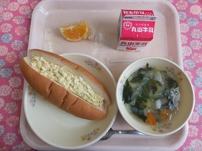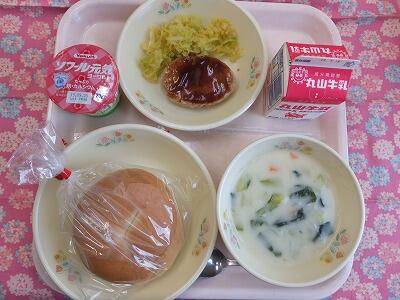 【献立名】ハンバーガー・野菜のクリームスープ・ヨーグルト・牛乳