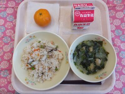 【献立名】五目寿司・つみれ汁・果物・牛乳