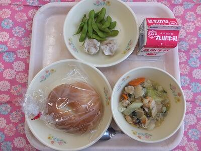 【献立】米粉パン・八宝菜・シューマイ・枝豆・牛乳