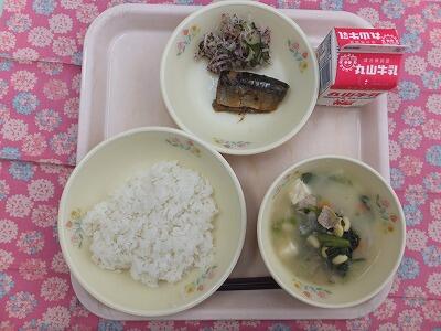 【献立】麦ごはん・さんまゆず味噌煮・ゆかり和え・豆豚汁・牛乳