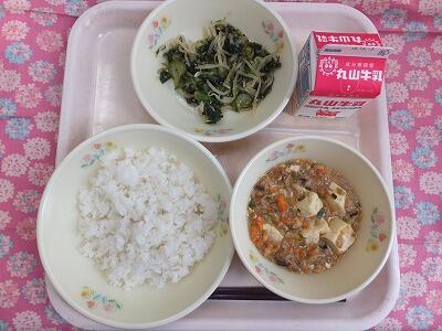 【献立】麦ごはん・麻婆豆腐・もやしのごま醤油・牛乳