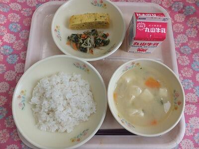 【献立】麦ごはん・彩り野菜の卵焼き・三色和え・道産子汁・牛乳