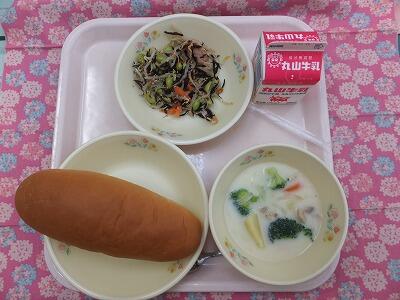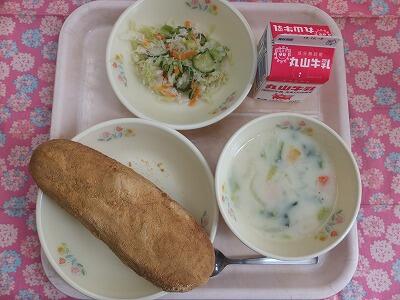 【献立】あげパン・野菜のクリームスープ・チキンサラダ・牛乳