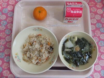 【献立】しいたけご飯・つみれ汁・果物・牛乳