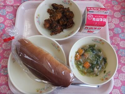 【献立】黒糖パン・たこ焼き風味揚げ・野菜スープ・牛乳