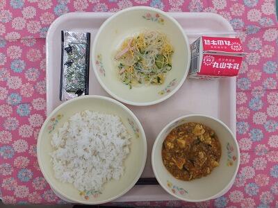【献立】麦ごはん・豆腐の中華煮・中華サラダ・牛乳