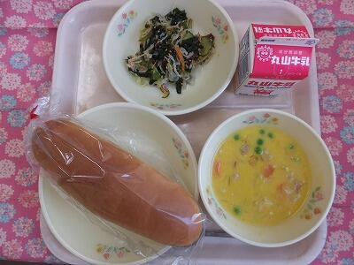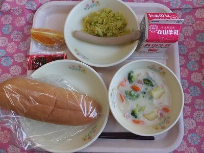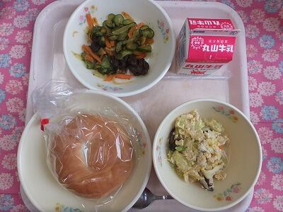 【献立】ミルクパン・かぼちゃのシチュー・海藻サラダ・牛乳
