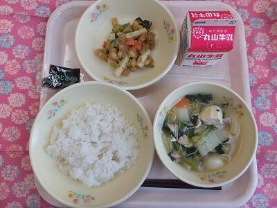 【献立】麦ごはん・麻婆春雨・中華サラダ・納豆・牛乳