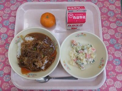 【献立】ハヤシライス・マセドアンサラダ・果物・牛乳
