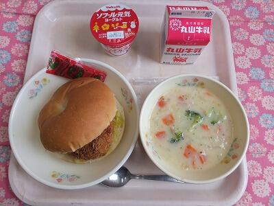 【献立】メンチカツバーガー・クラムチャウダー・ヨーグルト・牛乳