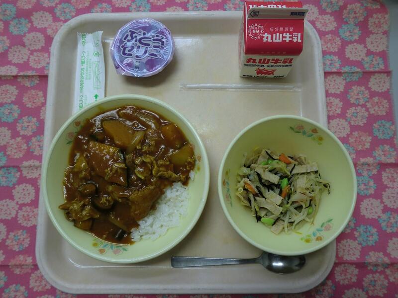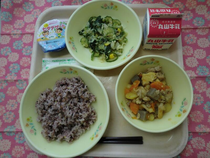 【献立】 夏野菜カレー・枝豆サラダ・ぶどうゼリー・牛乳