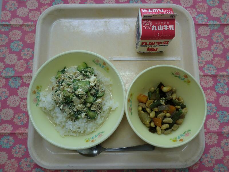 【献立】 冷や汁・五目豆・牛乳