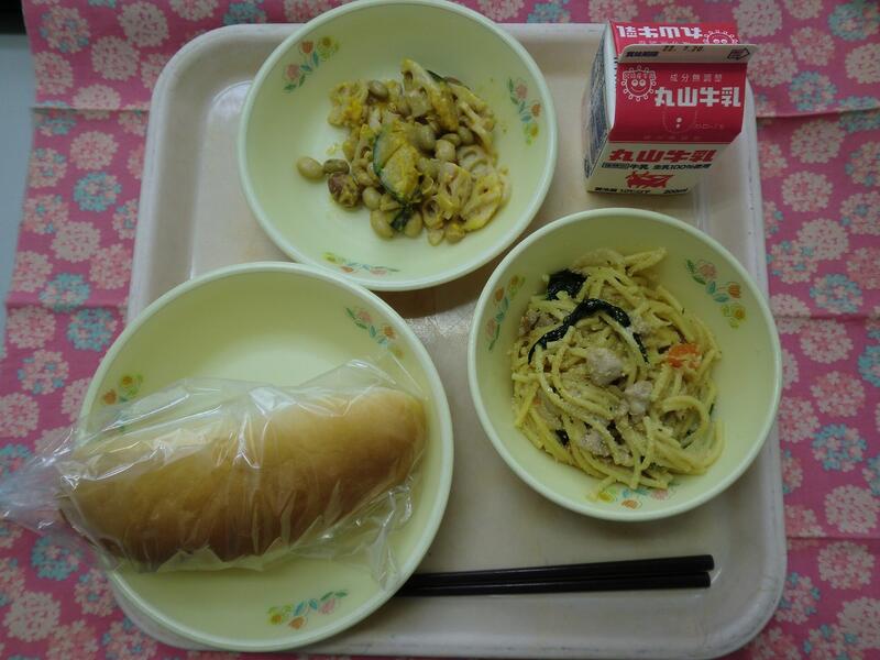 【献立】 減量コッペパン・たらこスパゲティ・ミックスビーンズサラダ・牛乳