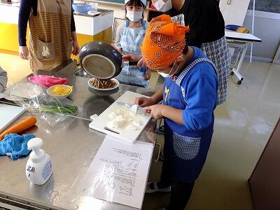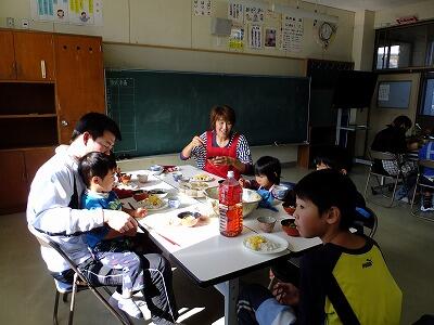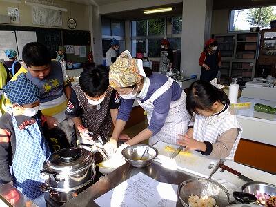 12月7日(土)、家庭教育学級「郷土料理を作ろう」を実施しました。栄養教諭の宮本先生を講師として、門川寿司、ぼったり汁、カボチャ入りみそカステラをつくりました。9家族27名が参加しました。宮本先生の指導のもと、親子で楽しく料理をして、おいしく会食をしました。とっても有意義な料理教室となりました。