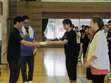 6月2日(日)に、町勤労者体育センターでPTA学級対抗ミニバレーボール大会を行いました。各学級と職員チーム、合わせて15チームが対戦しました。5月の最終週は毎晩、体育館で練習を行ってきました。その成果もあってか、どのチームも戦力が拮抗し、迫力あるプレーが多く見られました。低学年の学級では、子どもたちが応援のプラカードやうちわなどを用意して、大きな声でお母さんやお父さんたちを応援していました。熱戦を繰り広げながらも和気あいあいとした雰囲気で、閉会式では優勝チームだけでなく、各賞を受賞したチームや個人の方々にも温かな拍手が贈られていました。優勝は6年2組、準優勝は2年2組、3位3年1組、4位1年3組でした。