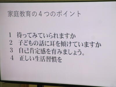 最後には家庭教育学級の意義として、下の写真のように4つのことを話してくださいました。