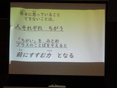 特別支援教育担当教員が、スライドで大事なことを示しながらゆっくりとした口調で具体的に説明をしました。そして、児童は、