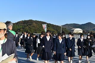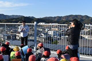本校の屋上にある避難タワーに避難してきた児童たち。