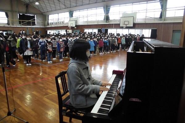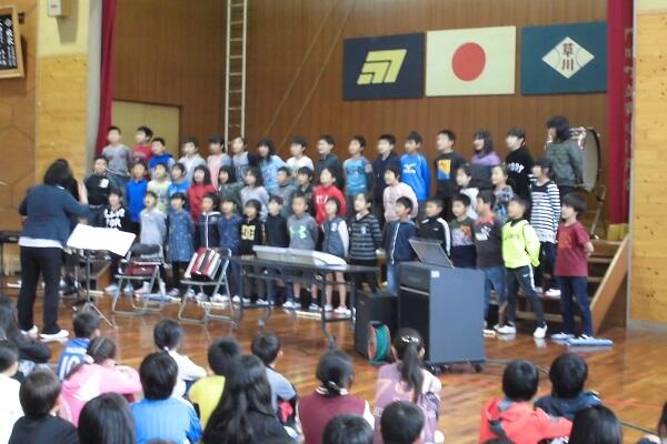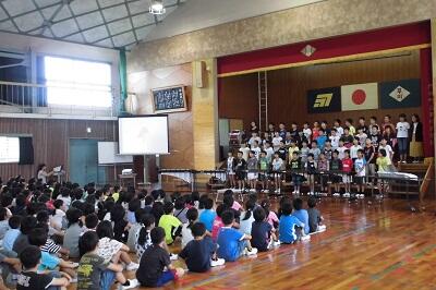 交流椎葉での様子や感想と,合唱(フレンドシップ)の発表でした。