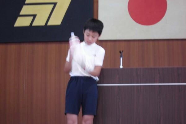 今朝は、7月の全校朝会でした。7月の目標等を確認した後、体育委員会の演技を見ながら、全員でラジオ体操第2を練習しました。
