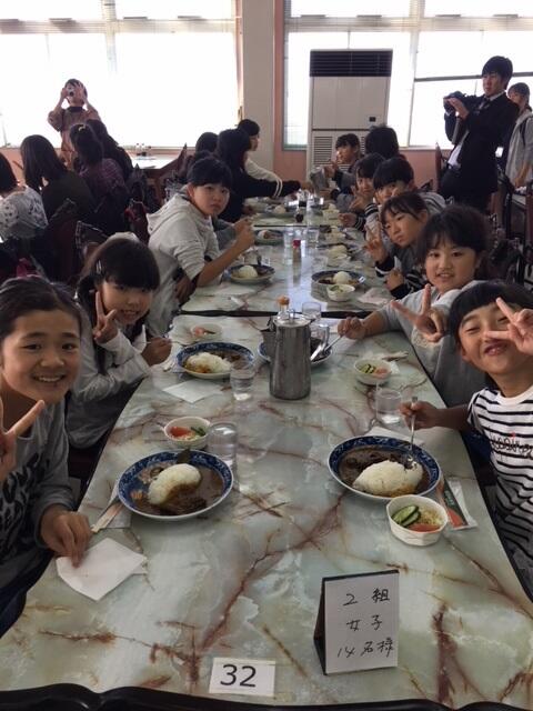 その後は,5年生の子ども達と一緒に給食を食べて頂きました。