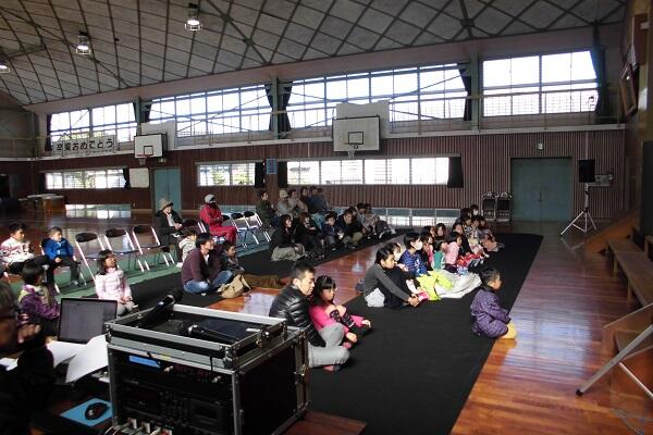 1・2年生が,食い入るようにみつめ,絵本を楽しんでいました。