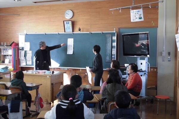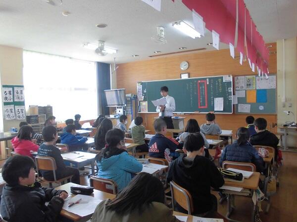 5年生の社会科の授業に参加して頂き,町長としての仕事や農業に関することを話して下さいました。子ども達は興味津々で聞いていました。