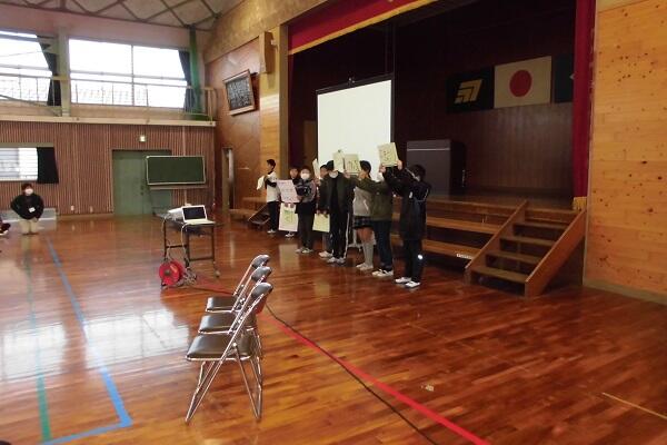 昨日の19日(火)の朝,3年生の発表集会を行いました。