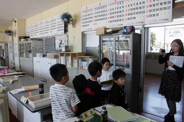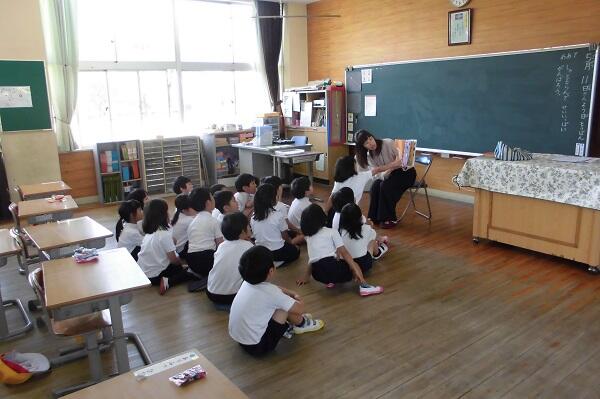 今朝は,どんぐりの会の方々が,1・2年生の読み聞かせに来てくださいました。