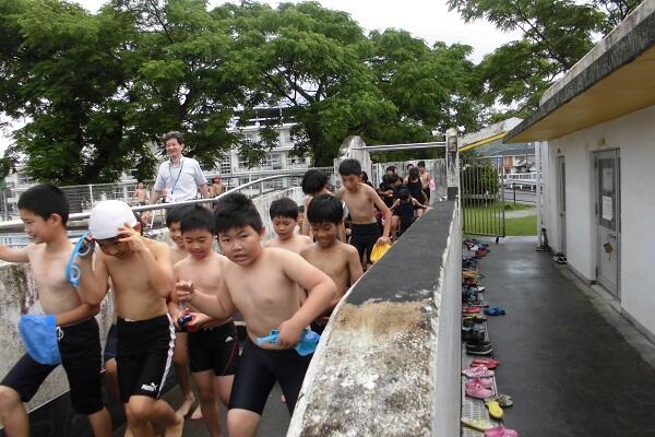 小学校最後の水泳学習です。自分の技能を少しでも向上させるよう真剣に学習に取り組むことでしょう。