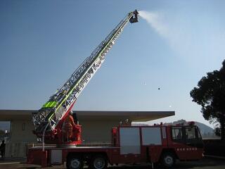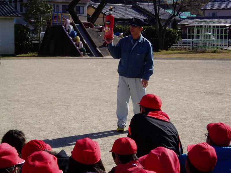 に避難しました。その後,消火器を使っての消火訓練を行いました。当
