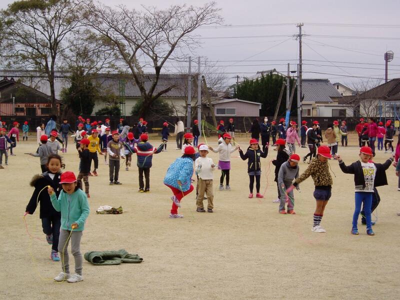 業間の時間を使ったなわとび運動が始まりました。全校児童が