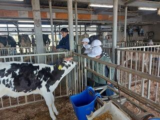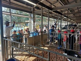 まず、舞鶴牧場ではいろいろな種類の牛に出会い、大きな体やかわいい瞳、時折聞こえてくる「モ~~~」という鳴き声に、子どもたちは終始わくわくしていました。