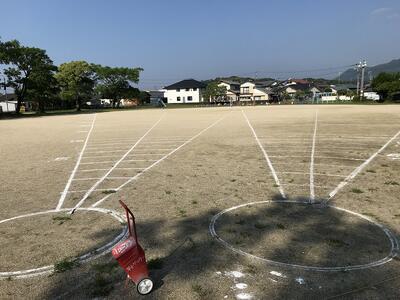 今朝、午前7時前、校長住宅に「キコ、キコ、キコ」とラインカーの音がしてきます。この音は、運動会前になると毎日聞こえる音です。