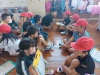 そして、いよいよ学校の中を2年生が案内して回りました。手を引いたり、優しく声をかけたり、説明カードを上手に読んだりして、1年生に草川小学校のことを一生懸命に伝えていました。1年生も2年生の話をしっかりと聞けていました。