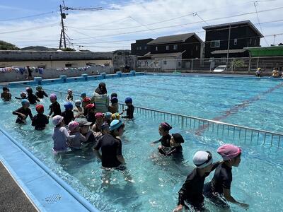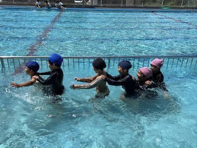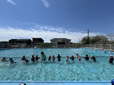 プールの水は冷たかったですが、あひるやかにのポーズで歩いたり、みんなでじゃんけん列車をして盛り上がりました。
