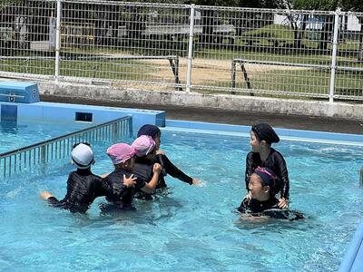 最後は流れるプールをみんなで作って、浮いてみたり、逆の方向に歩いたりして、楽しく活動することができました。