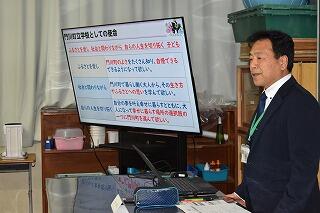 ジャンケン列車で盛り上がった後は、スライドを使って、学校の1日を紹介しました。
